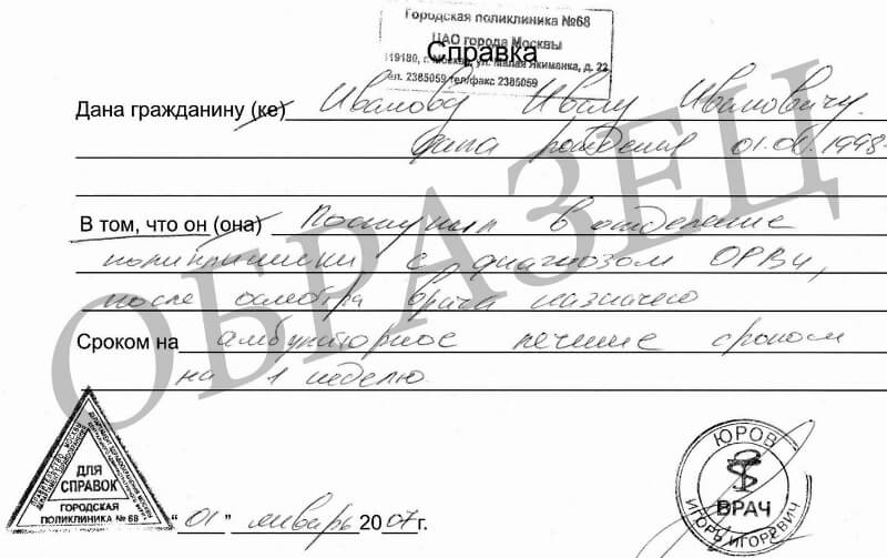 Любой из перечисленных случаев вряд ли покажется достаточно веским для начальника. Единственное, что позволит служащему оправдаться перед строгим руководителем – справка от врача, которая подтвердит, что специалист отсутствовал в офисе по уважительной причине. Но где получить официальный медицинский документ? Придется идти в поликлинику. Вот только, если вы здоровы, у вас отсутствует температура и явные признаки простуды, то доктор вряд ли подпишет необходимую справку. Есть ли выход из сложившейся ситуации? Специалисты «Справки за час» легко и оперативно выдадут клиенту документ, позволяющий «прогулять» работу и университет без неприятных последствий.